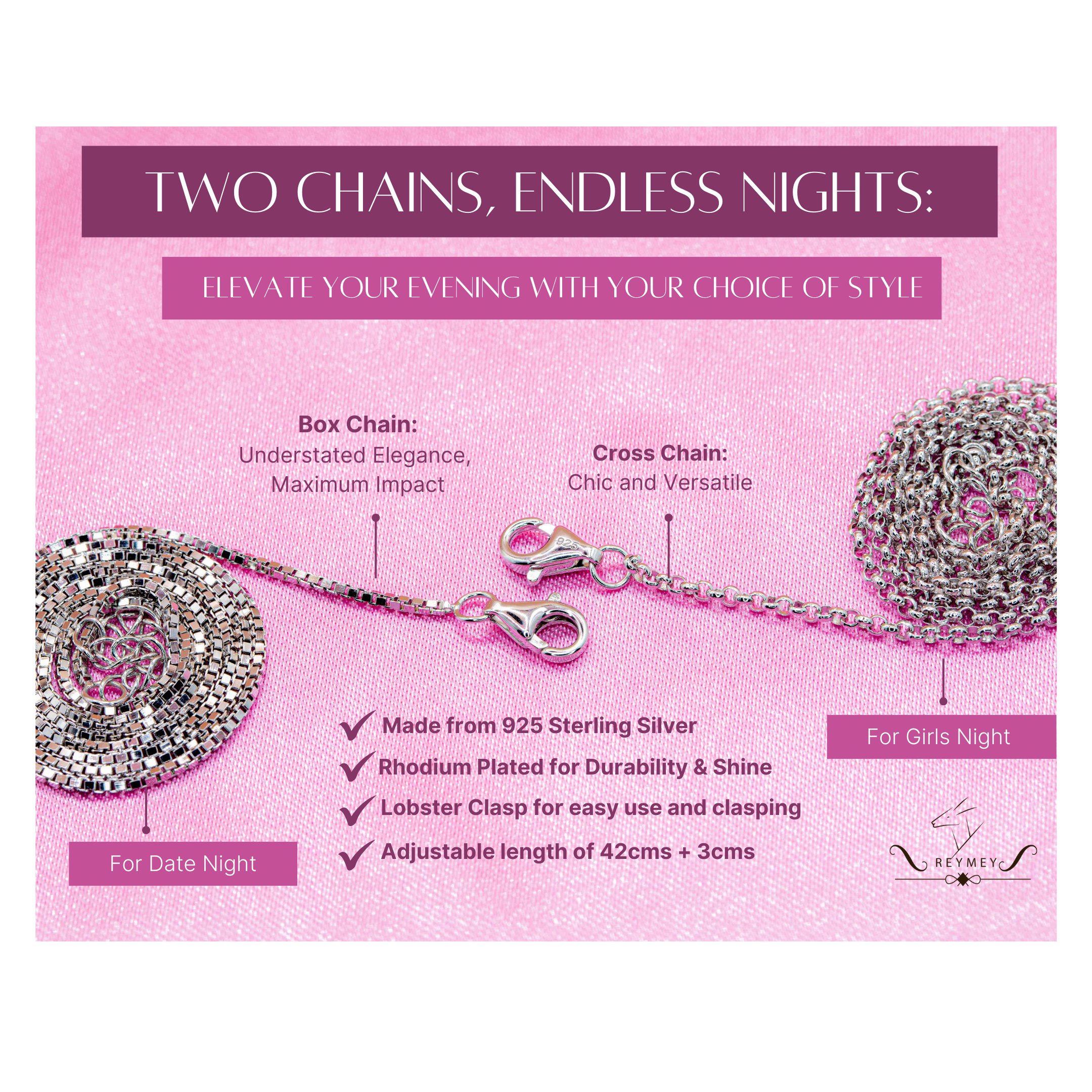 - Luxurious Rhodium Plating: Both the pendant and its 42 cm box chain boast a lustrous finish, ensuring enduring radiance and unmatched durability for years to come.